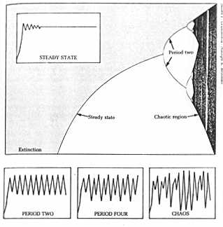 x(n+1)=r x(n) * [ 1- x(n) ] <- logistic difference equation
